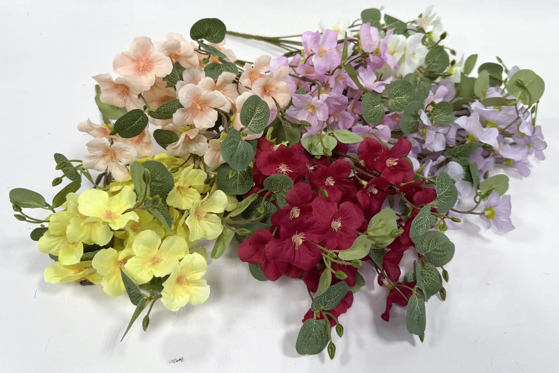 Ветка — букет сакуры с эвкалиптом для венка (1010237) 34 см, (уп./12шт)